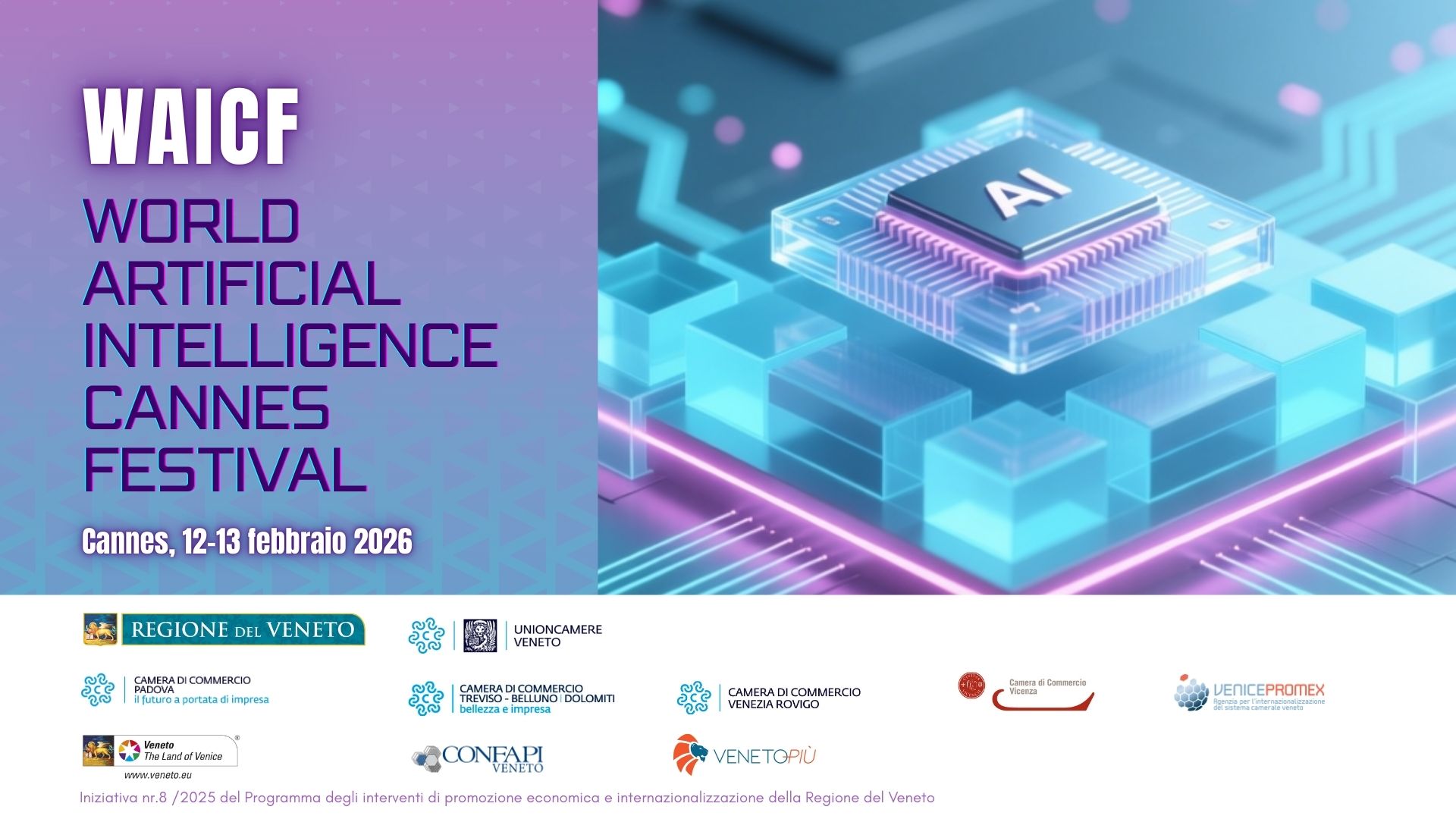 Nell’ambito del programma degli interventi di promozione economica e internazionalizzazione per l’anno 2025 con relativa convenzione siglata tra Regione del Veneto e Unioncamere del Veneto, Venicepromex Agenzia per l’internazionalizzazione s.c.a.r.l. in collaborazione con Confapi Veneto e Veneto Più srl – Ente strumentale di Confapi Padova, organizza la presenza di aziende venete alla manifestazione fieristica WAICF – World Artificial Intelligence Cannes Festival il 12 e 13 febbraio 2026.